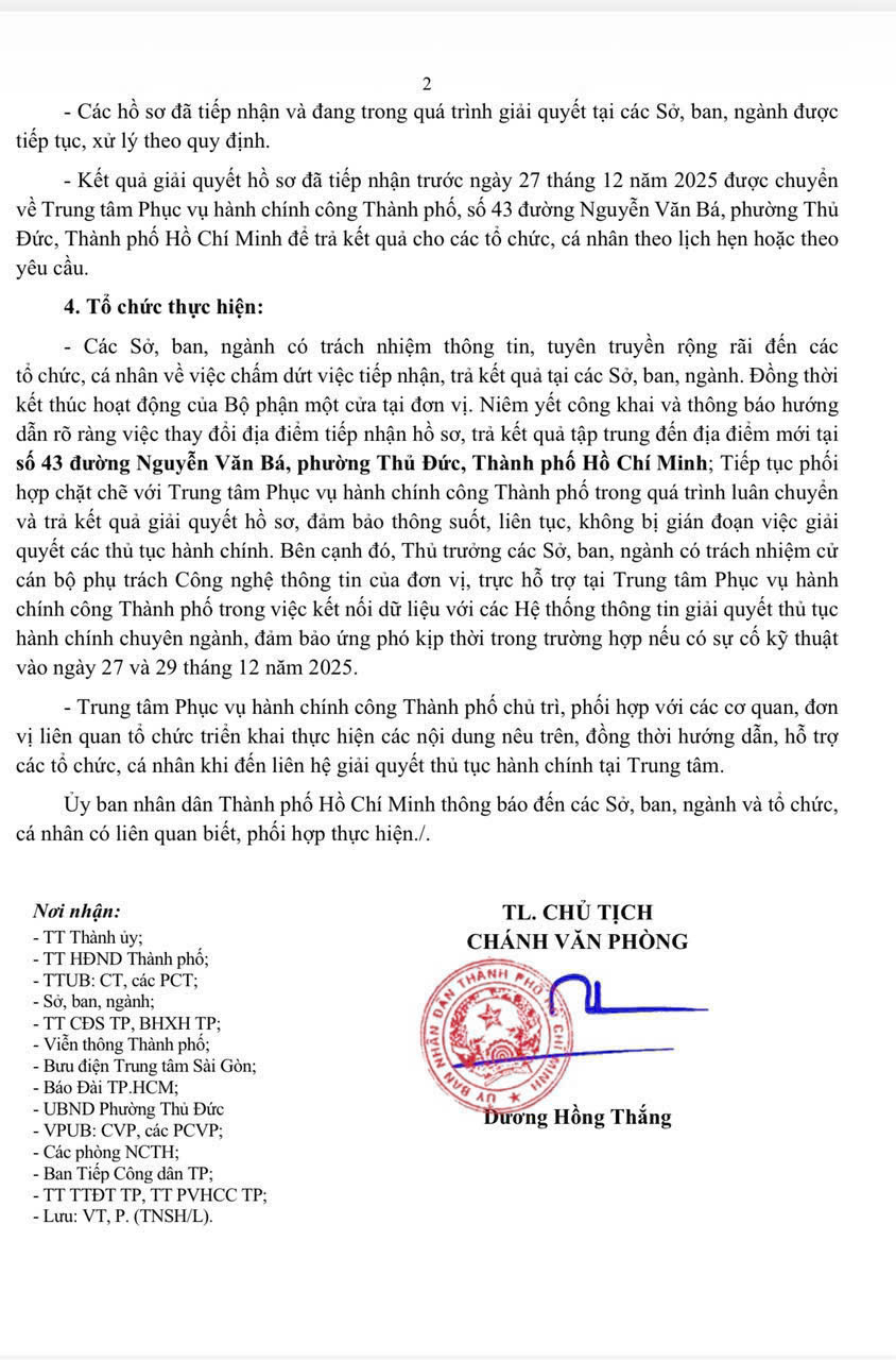 quyết thủ tục hành chính. Ủy ban nhân dân Thành phố thông báo đến các Sở, ban, ngành và