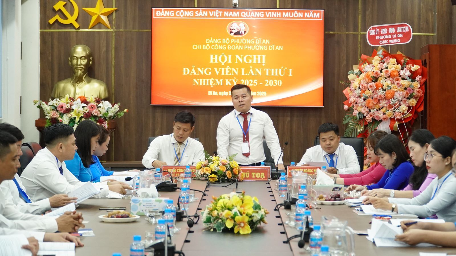 Hội nghị đã thông qua Quyết định của Đảng ủy phường Dĩ An về việc chỉ định cấp ủy Chi bộ gồm 5 đồng chí. Đồng chí Đoàn Nam Lê Thiện – Đảng ủy viên, Chủ tịch Công đoàn phường được chỉ định giữ chức Bí thư chi bộ Công đoàn phường Dĩ An nhiệm kỳ 2025-2030.