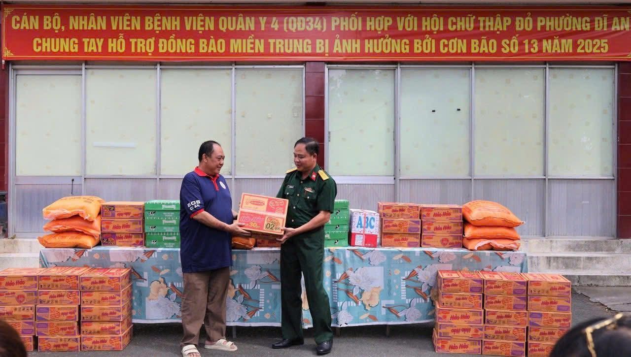 Sáng 22/11, Bệnh viện Quân y 4 đã trao tặng nhiều phần quà ý nghĩa cho nhóm thiện nguyện Nguyễn Bình và Đội SOS Dĩ An nhằm kịp thời hỗ trợ bà con tỉnh Phú Yên vượt qua khó khăn sau bão lũ.