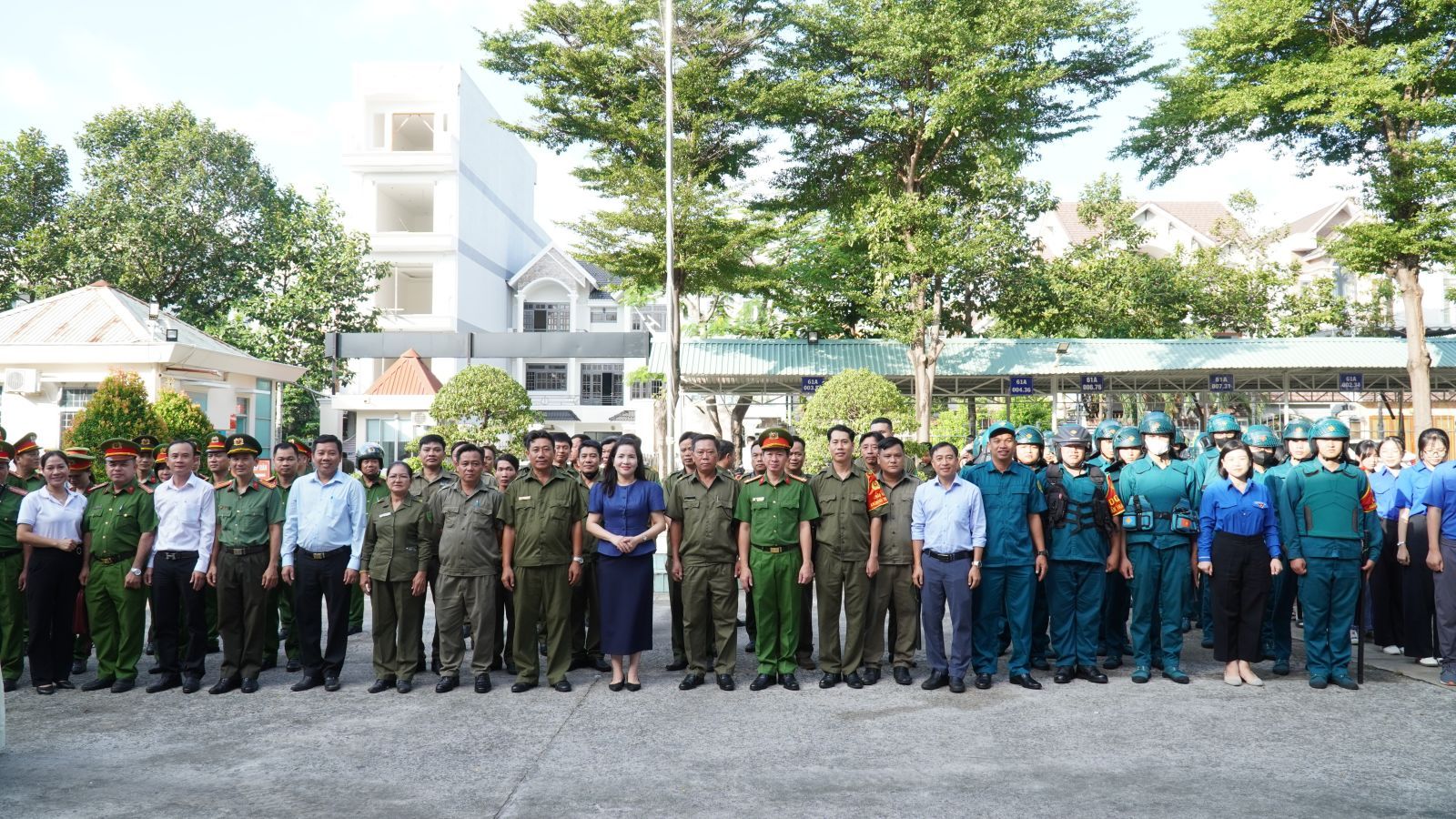 Phát biểu chỉ đạo tại buổi lễ, bà Trần Thị Thanh Thủy – Phó Bí thư Đảng ủy, Chủ tịch UBND phường Dĩ An ghi nhận tinh thần sẵn sàng, quyết tâm của các lực lượng tham gia. Đồng thời nhấn mạnh: các lực lượng cần bám sát các nhiệm vụ trọng tâm, phát huy sức mạnh tổng hợp của cả hệ thống chính trị, giữ vững an ninh trật tự địa bàn, góp phần vào thành công của Đại hội Đảng các cấp nhiệm kỳ 2025-2030 và các sự kiện, ngày lễ kỷ niệm lớn trong năm.