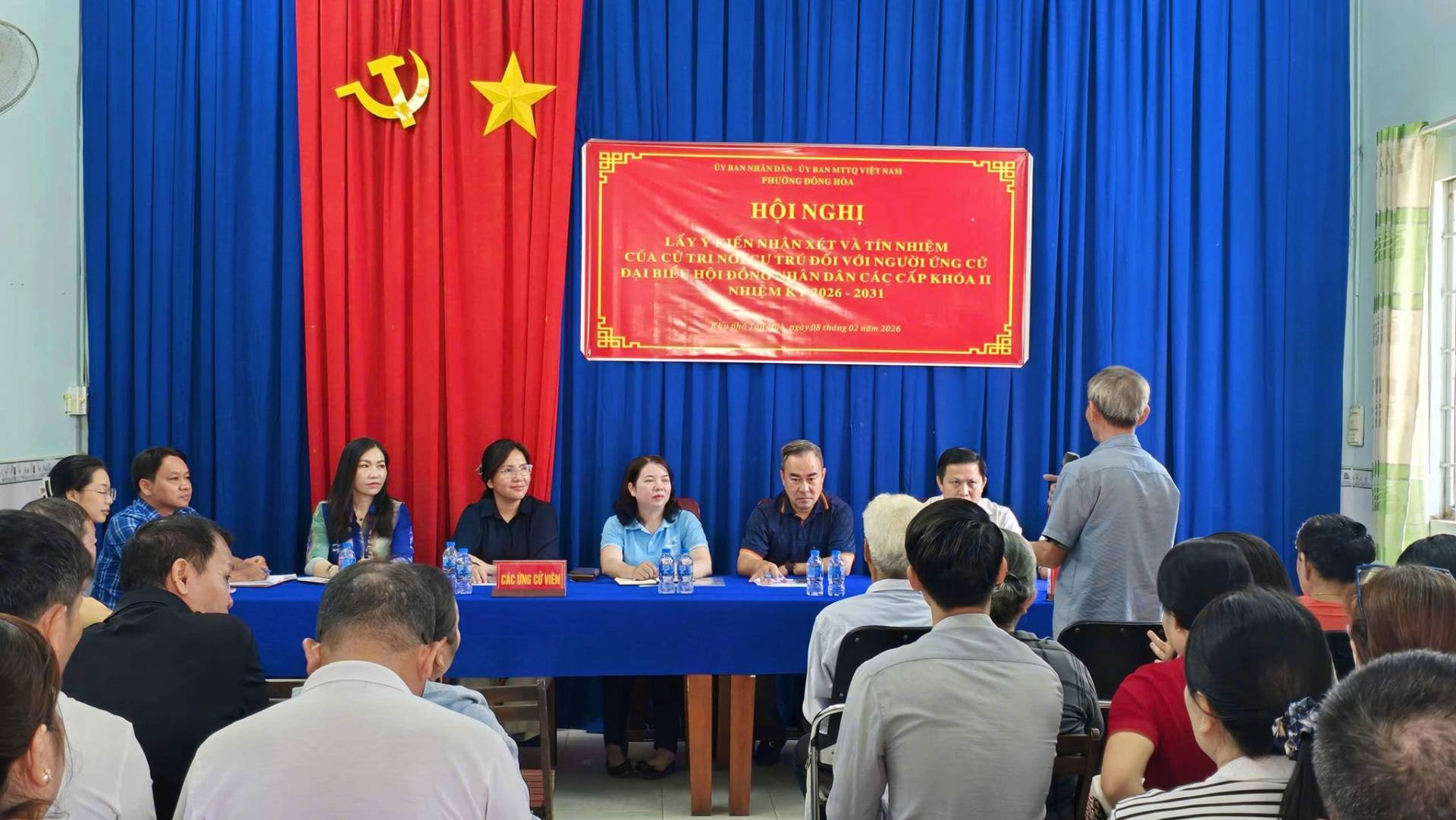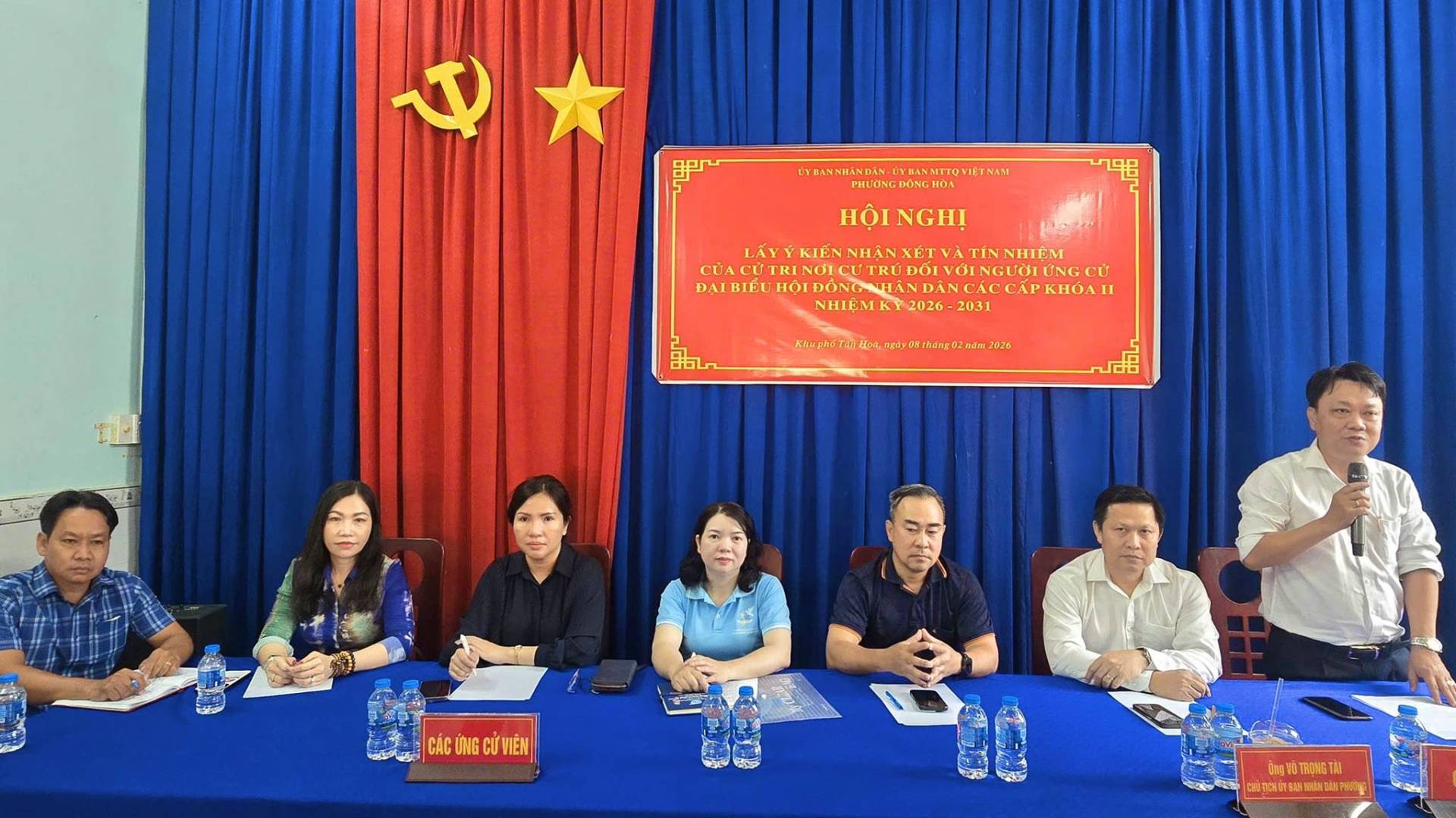 Sáng ngày 8/2, tại Văn phòng Ban điều hành khu phố Tân Hòa, phường Đông Hòa đã diễn ra Hội nghị lấy ý kiến cử tri nơi cư trú đối với các ứng cử viên đại biểu Hội đồng nhân dân các cấp nhiệm kỳ 2026–2031. Tại hội nghị, bà Trần Thị Thanh Thủy, Phó Bí thư Đảng ủy, Chủ tịch UBND phường Dĩ An, hiện đang cư trú tại khu phố Tân Hòa, phường Đông Hòa, được giới thiệu để cử tri nơi cư trú tham gia góp ý và biểu quyết tín nhiệm tham gia ứng cử đại biểu HĐND TP.HCM.
