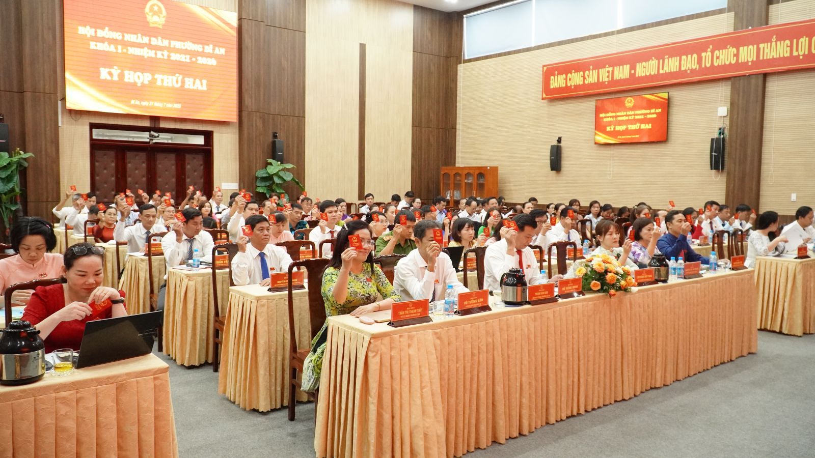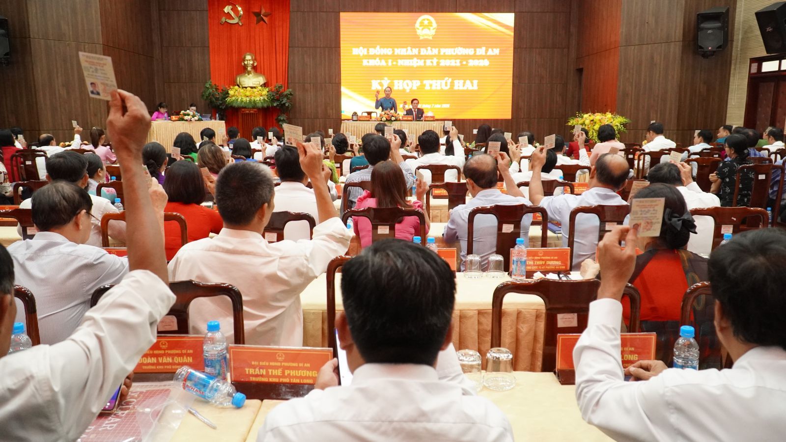 Với sự đồng thuận, nhất trí cao, kỳ họp đã biểu quyết thông qua 05 Nghị quyết, bao gồm Nghị quyết về Quy chế làm việc của HĐND, Thường trực, các Ban, tổ đại biểu và đại biểu HĐND phường khóa I, nhiệm kỳ 2021-2026; Nghị quyết về chương trình giám sát của HĐND phường năm 2026; Nghị quyết phát triển KTXH 6 tháng cuối năm 2025; Nghị quyết dự toán thu, chi ngân sách nhà nước, phân bổ dự toán ngân sách Nhà nước 6 tháng cuối năm 2025; Nghị quyết cho thôi làm nhiệm vụ đại biểu HĐND phường Dĩ An khóa I, nhiệm kỳ 2021-2026 đối với ông Nguyễn Quốc Cường- Nguyên Trưởng Công an phường An Bình thuộc tổ đại biểu số 7 và bà Ngô Ngọc Điệp - Nguyên Phó Bí thư Thành ủy, Chủ tịch HĐND thành phố Dĩ An thuộc tổ đại biểu số 2 do có đơn xin thôi làm nhiệm vụ đại biểu HĐND phường Dĩ An nhiệm kỳ 2021-2026 vì không sắp xếp được thời gian tham dự các cuộc họp do Thường trực HĐND phường triệu tập.