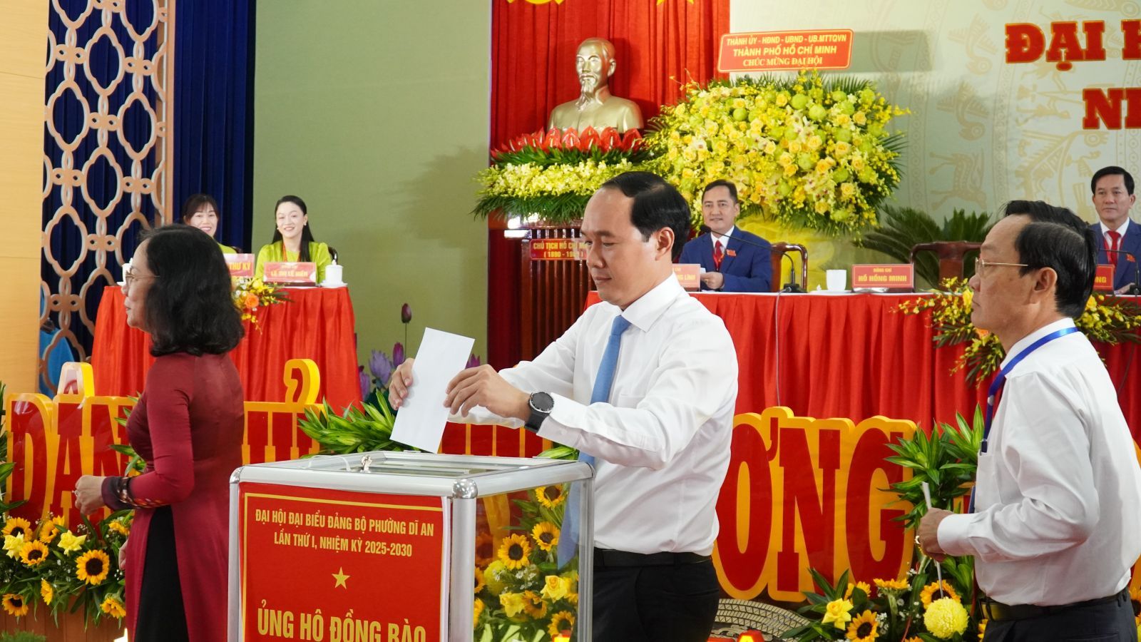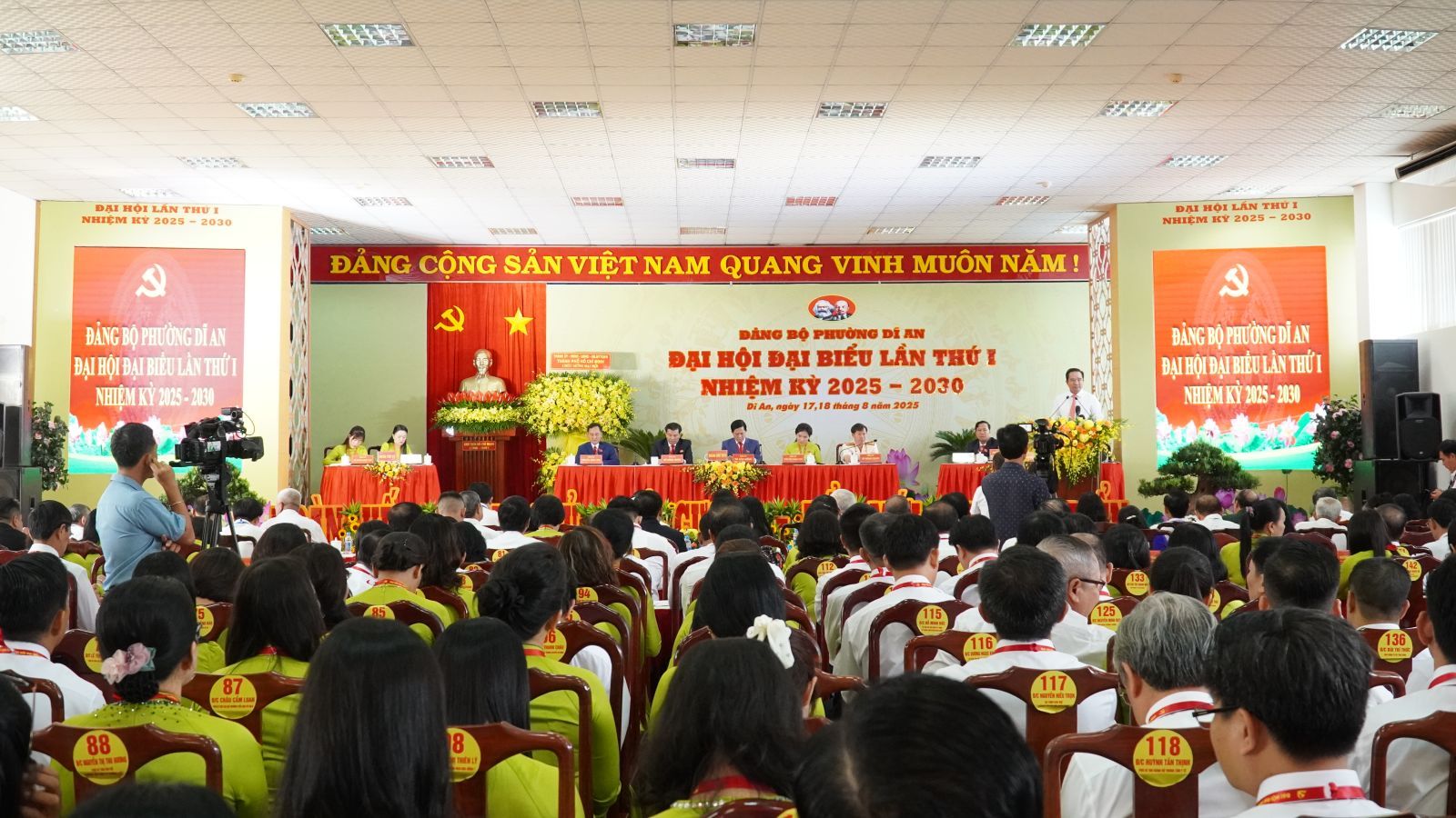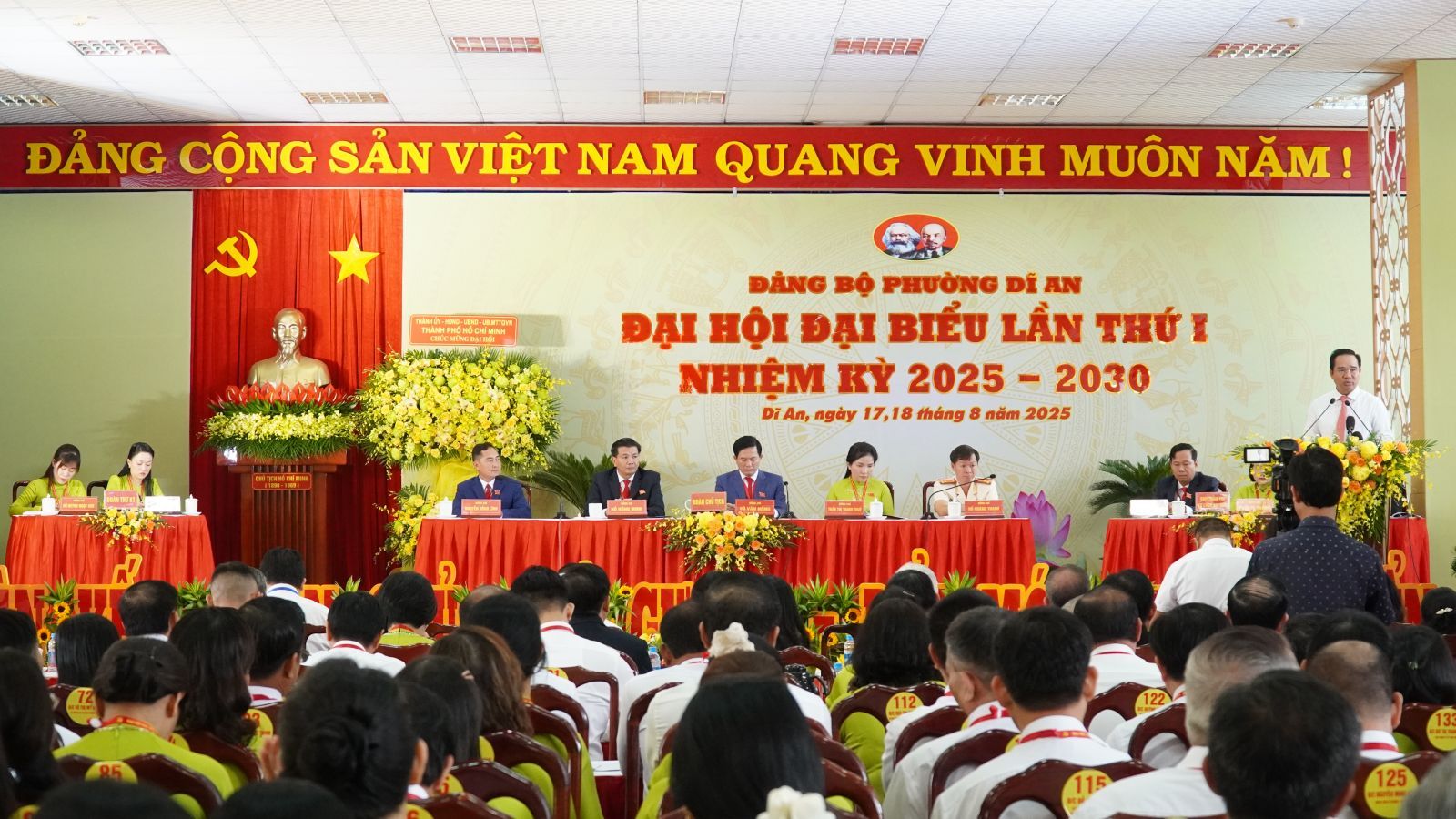 Sáng ngày 18/8, Đại hội đại biểu Đảng bộ phường Dĩ An lần thứ I, nhiệm kỳ 2025-2030 đã diễn ra phiên làm việc chính thức với sự tham dự của 249 đại biểu đại diện cho 3504 đảng viên trong toàn Đảng bộ. Đồng chí Nguyễn Văn Được- Uỷ viên BCH Trung ương Đảng, Phó Bí thư Thành uỷ, Chủ tịch UBND TP Hồ Chí Minh đến dự và chỉ đạo Đại hội. Cùng tham dự đoàn lãnh đạo thành phố còn có đồng chí Nguyễn Văn Lợi- Uỷ viên BCH Trung ương Đảng, Trưởng đoàn Đại biểu Quốc hội khoá XV TP Hồ Chí Minh và các đồng chí BTV Thành uỷ, các Ban xây dựng Đảng Thành uỷ ...Về phía địa phương, tham dự có các đồng chí lãnh đạo Dĩ An, các phường qua các thời kỳ; Anh hùng lực lượng vũ trang, Anh hùng lao động thời kỳ đổi mới; lãnh đạo Đảng uỷ-HĐND-UBND-UBMTTQ Việt Nam phường.
