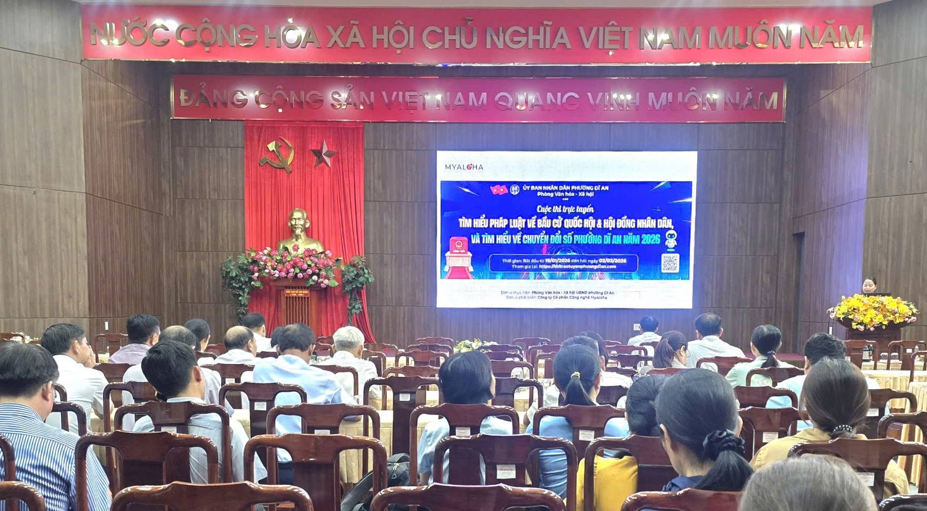 Phường Dĩ An tổ chức thi trực tuyến tìm hiểu pháp luật về bầu cử và chuyển đổi số