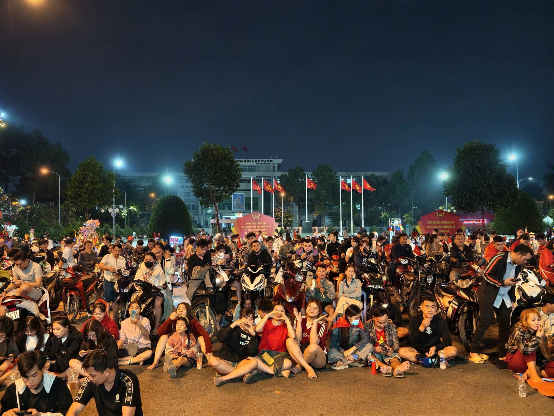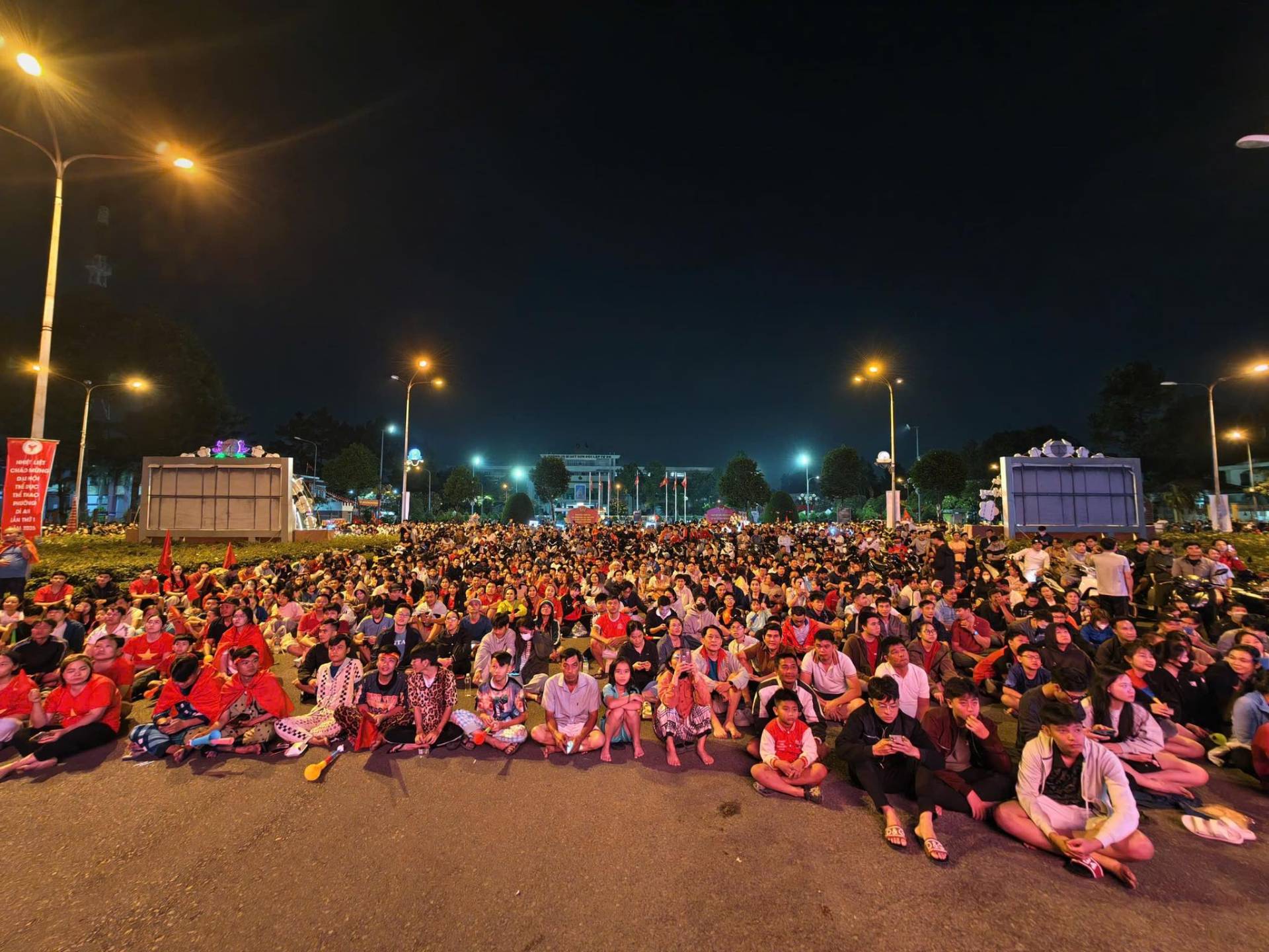 Tối ngày 20/01/2026, quảng trường trung tâm Phường Dĩ An, người dân đã cùng nhau tụ họp để tiếp lửa cho đội tuyển Việt Nam